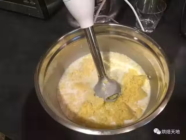 4,將斑斕精加入到另一份2/3的粉漿里拌勻。