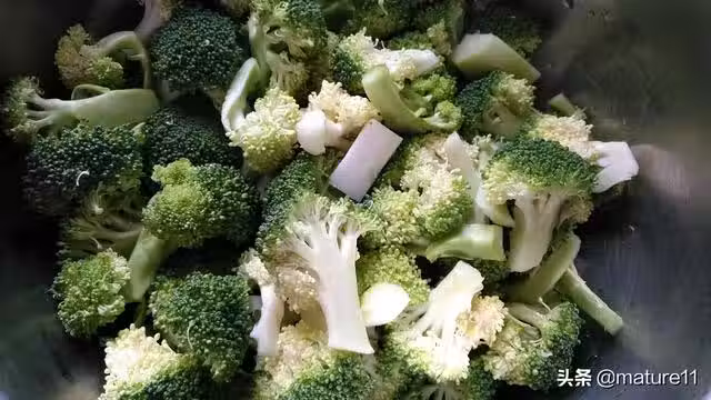 2.鍋中水燒開,放少許鹽和食用油,西蘭花焯燙1分鐘撈出