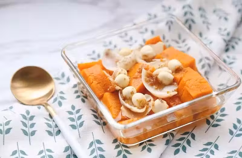 蓮子10顆,百合10塊,麵粉150克,南瓜1大塊,糖桂花3勺