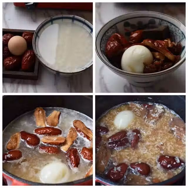 2紅棗和桂圓洗凈,紅棗去核切小塊,把雞蛋煮熟剝殼。