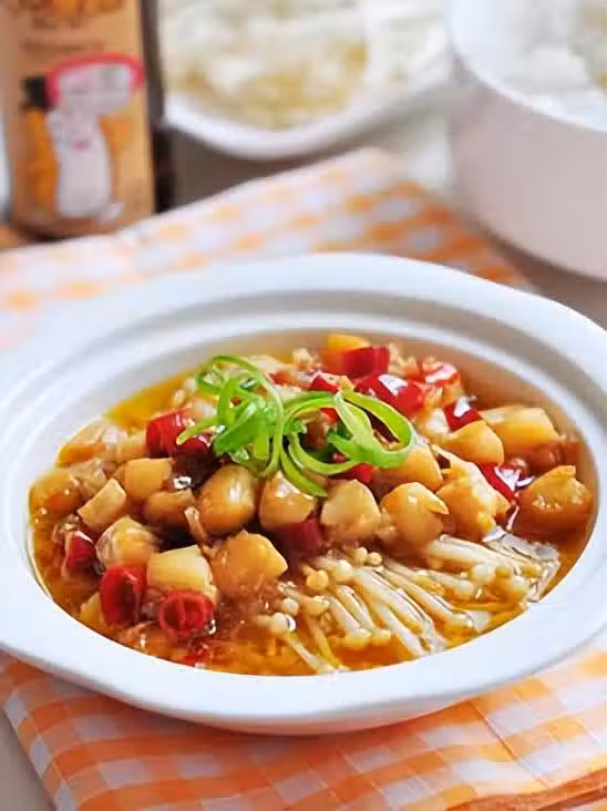 食材:乾貝,金針菇,蒜,干辣椒,辣醬,蒸魚鼓油