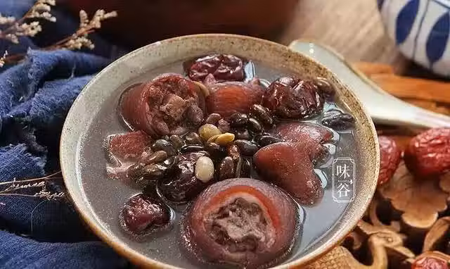 【材料】:豬尾巴1根,黑豆適量、紅棗6個、姜2片,鹽適量
