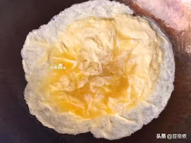 4、鍋熱少許的油,倒入雞蛋液攤開。