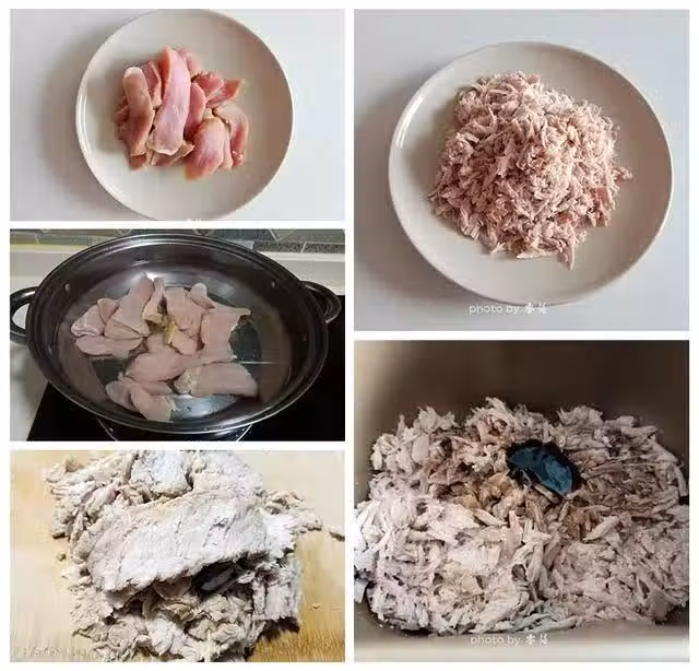 4、然後將豬肉撕成細條;