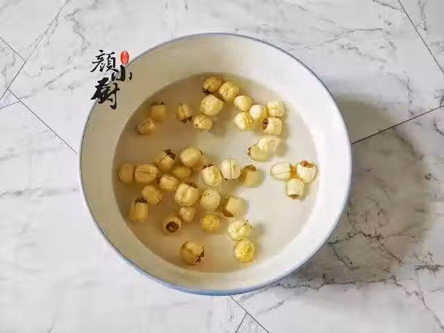 步驟四:鍋中依次放入洗凈的紅棗、蓮藕塊、蓮子。