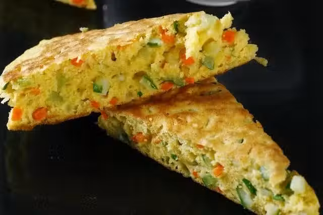 蝦仁打成泥,西蘭花焯水後切丁,胡蘿蔔切丁,將其混合到一起,蔥花也加進去,然後打一個雞蛋,再用鹽、白鬍椒粉、澱粉調味,充分拌勻。鍋子裡刷油,燒熱後把麵糊攤成餅狀,煎到兩面金黃,出鍋開吃。
