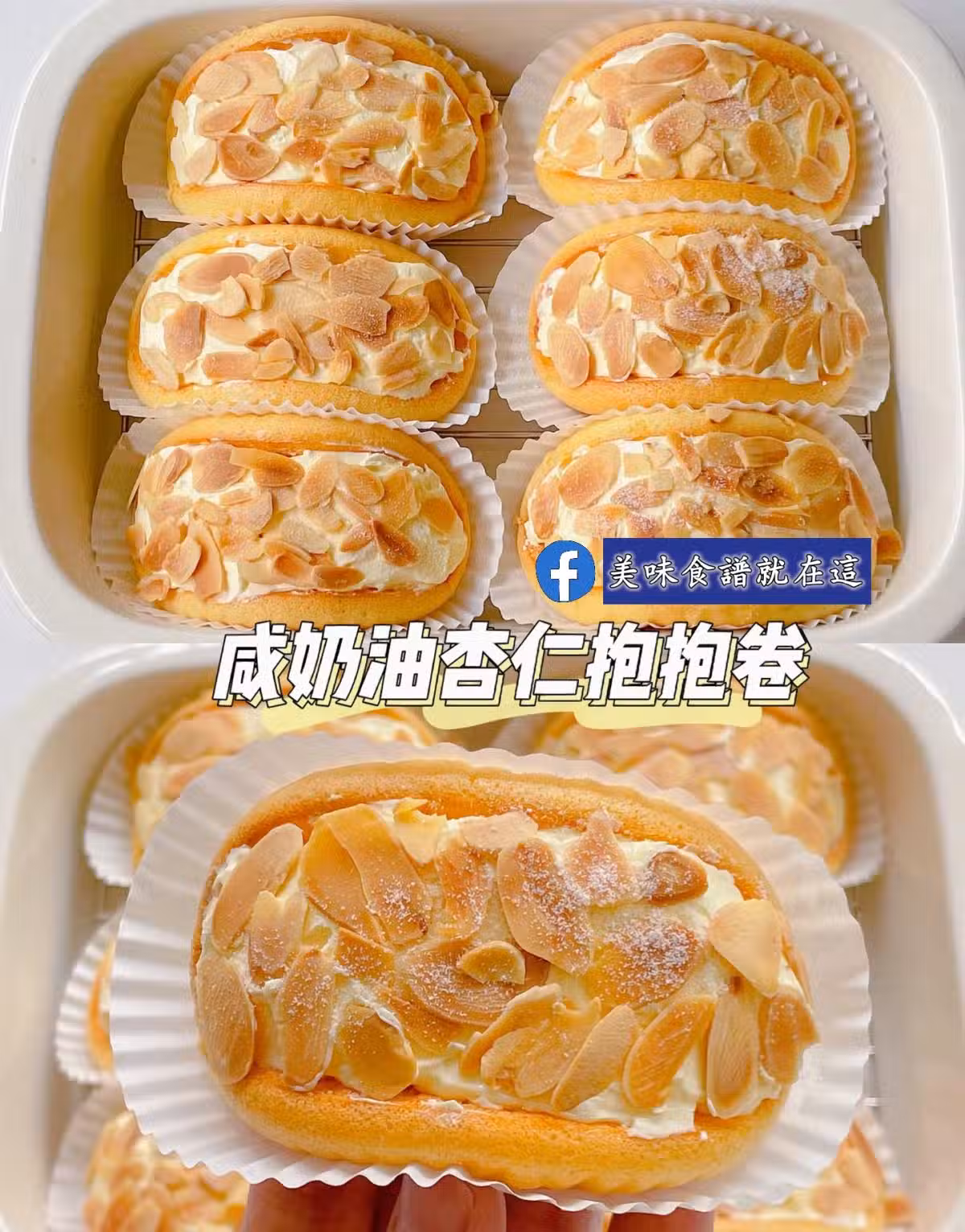 私房爆款🔥咸香綿軟‼️咸奶油杏仁抱抱卷👏👏超愛的咸奶油杏仁抱抱捲來啦~鬆軟香甜的蛋糕➕咸香醇厚的奶油➕香香脆脆的杏仁片,搭配在一起好吃到停不下來‼️喜歡的可以安排起來啦~