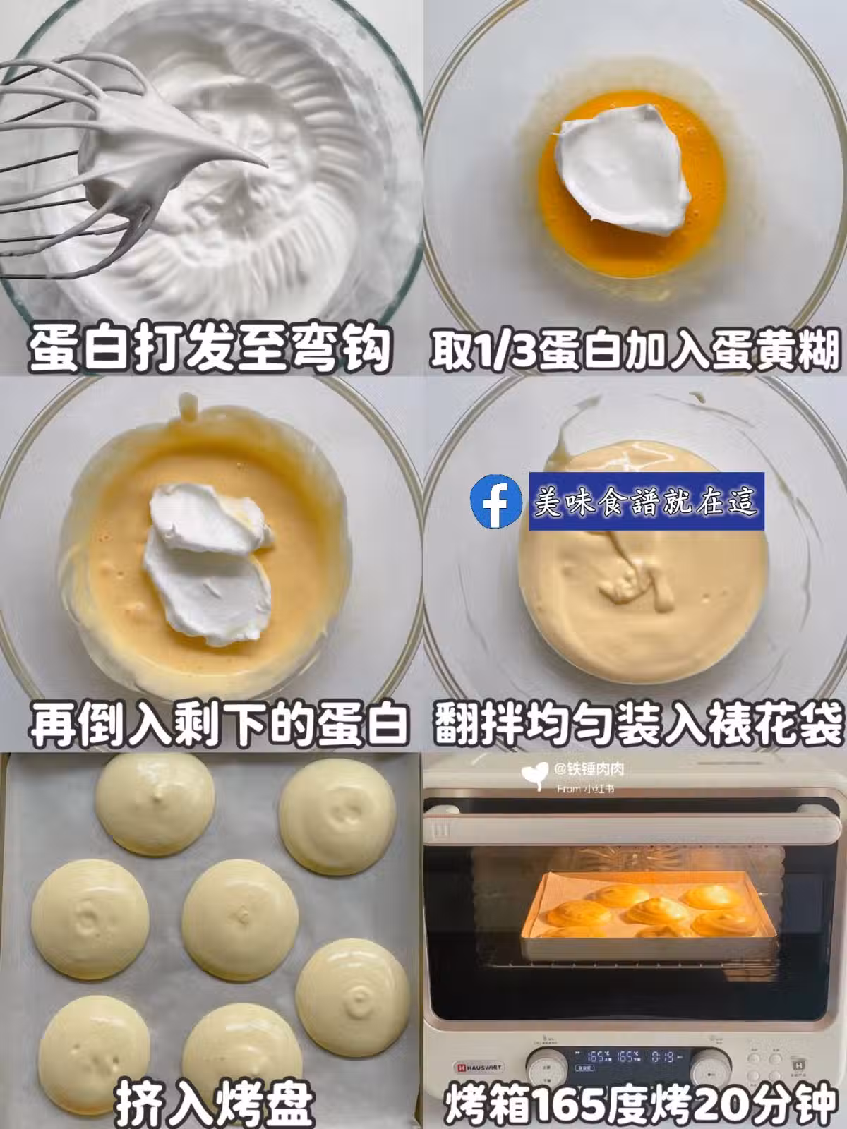 3⃣️打發蛋清,蛋清打發至魚泡狀分3次砂糖打發至小彎鉤狀即可。