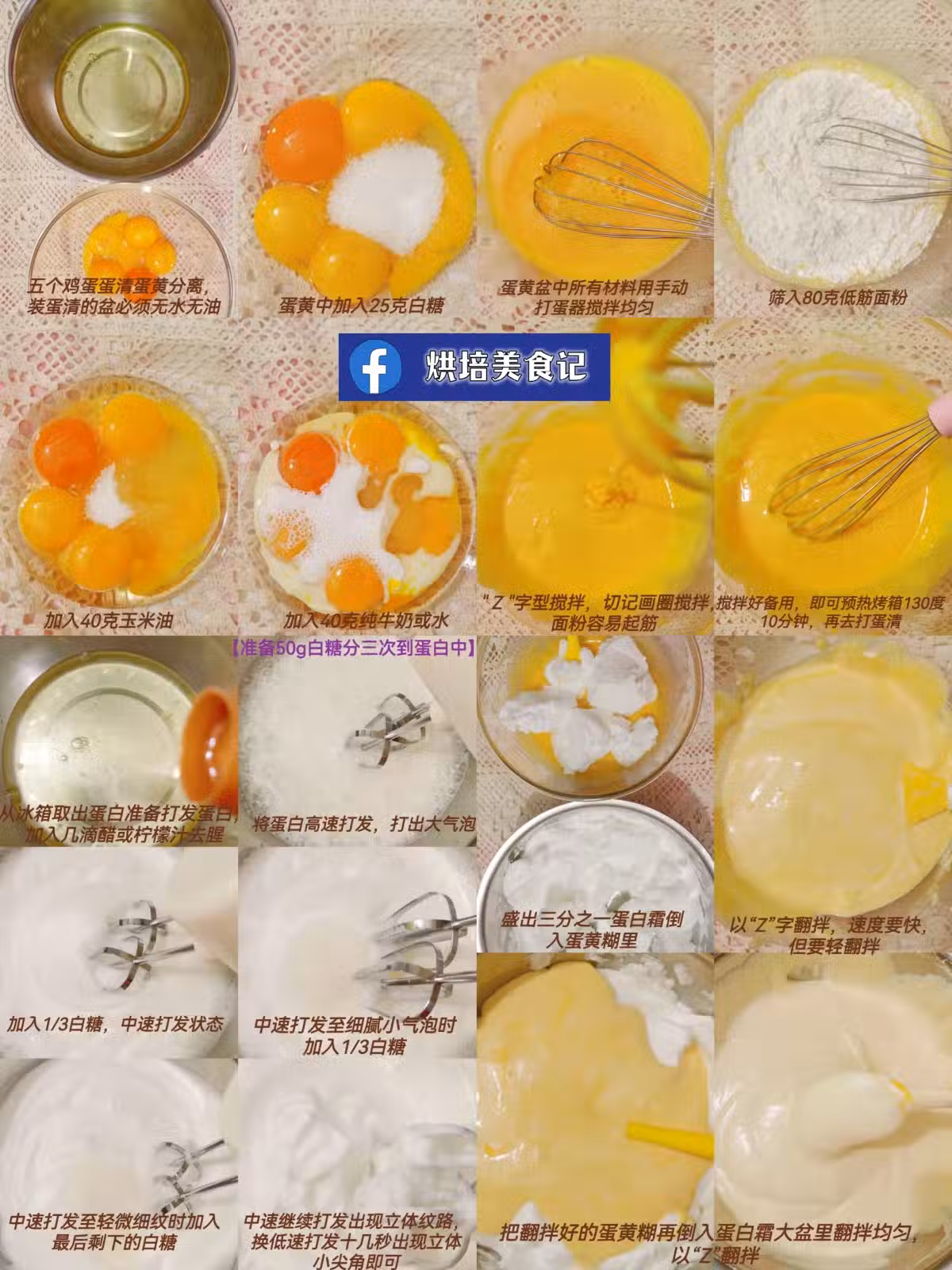 2⃣蛋黃盆依次中加入25g白糖,40g玉米油,40g牛奶,用手動打蛋器攪拌均勻;