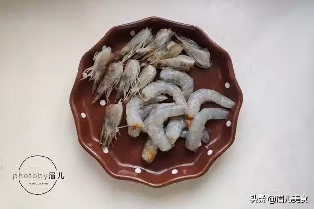 2、蝦仁開背去除蝦線清洗乾淨,放入碗中,加入少許白鬍椒粉、料酒和澱粉,攪拌均勻腌制一會,這樣蝦仁口感更鮮嫩。