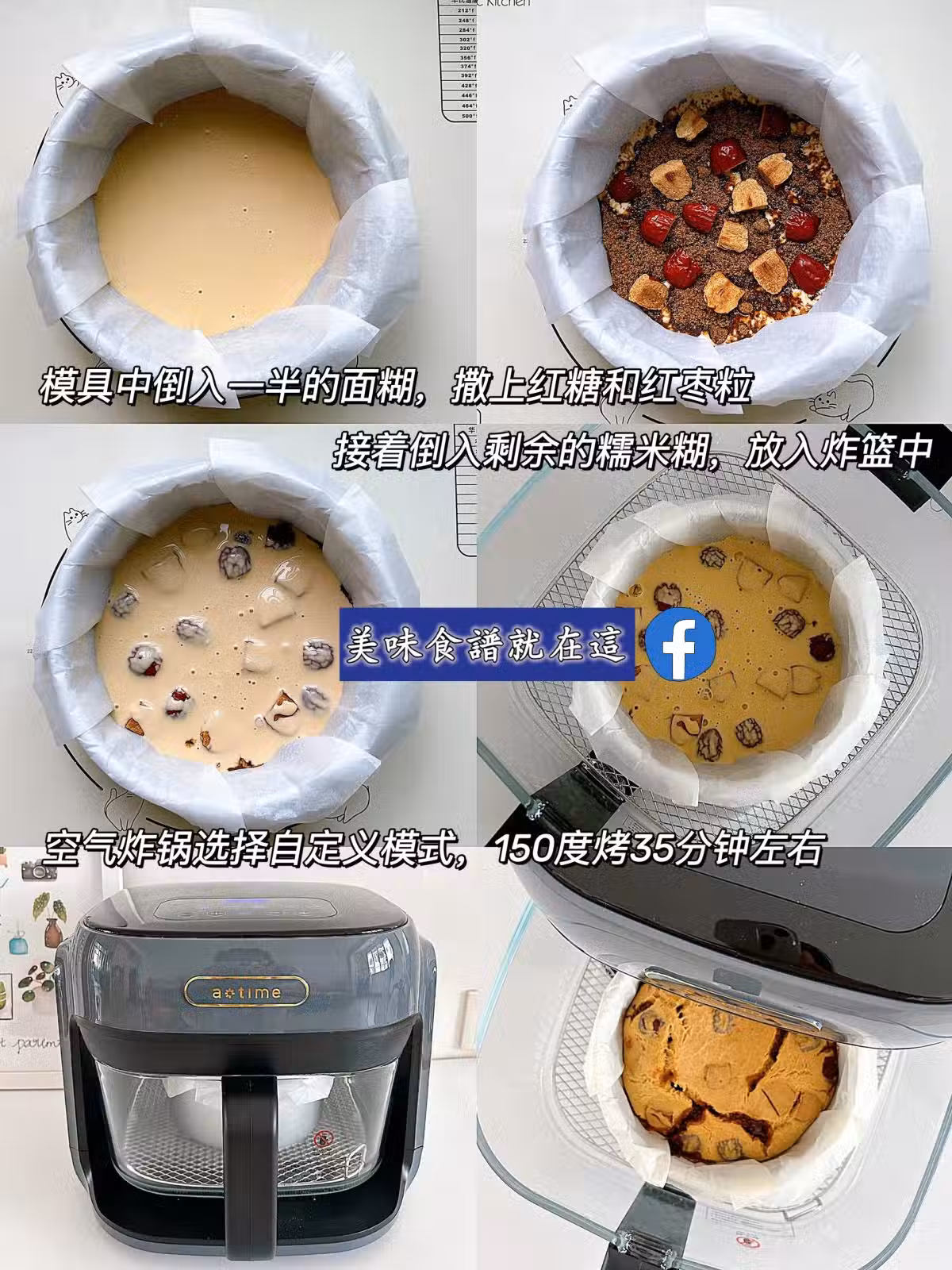 4⃣、將模具放入空氣炸鍋中,選擇自定義模式,150°烘烤35分鐘左右