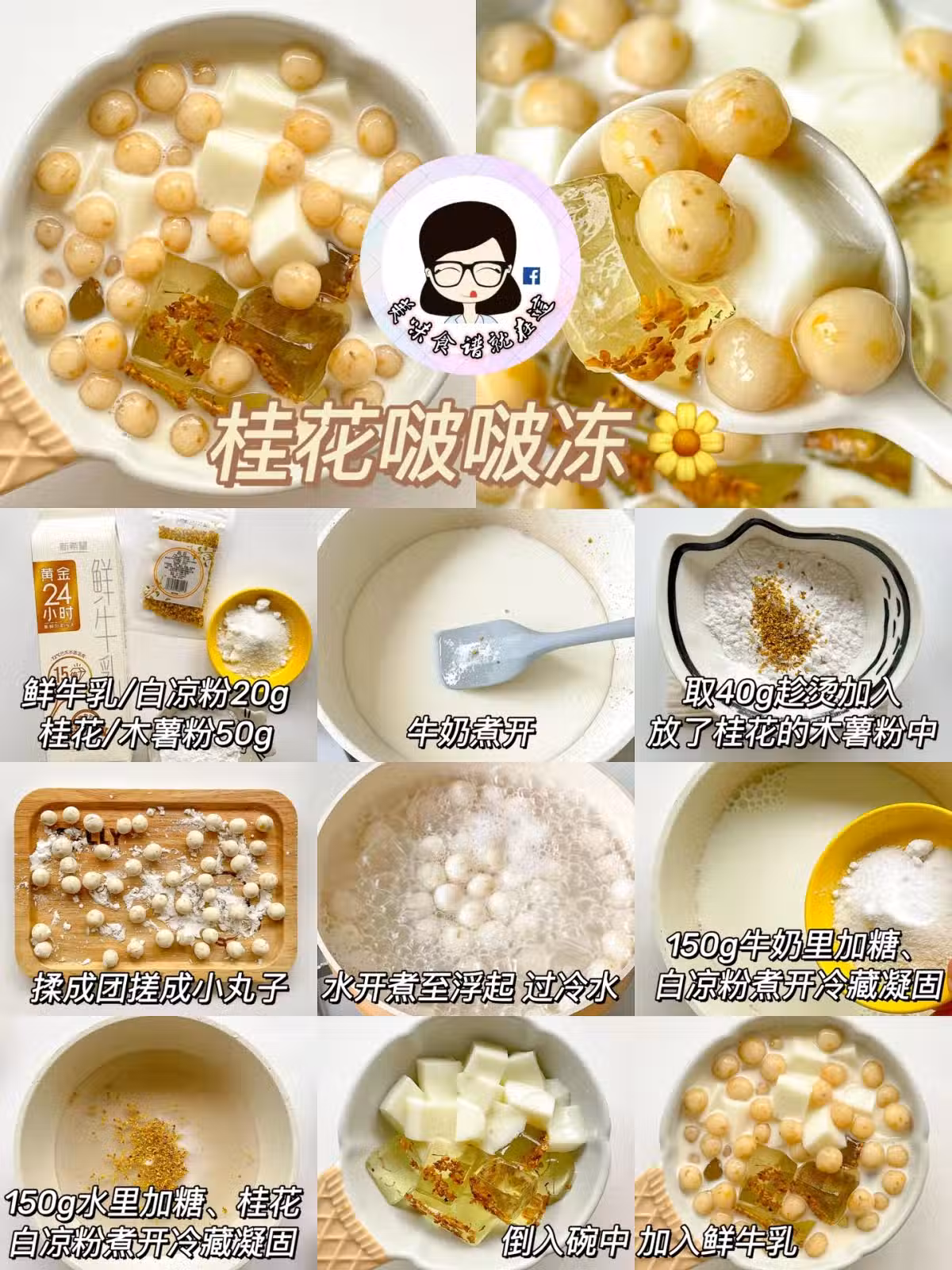 鮮牛乳、桂花、白涼粉20g、木薯粉50g