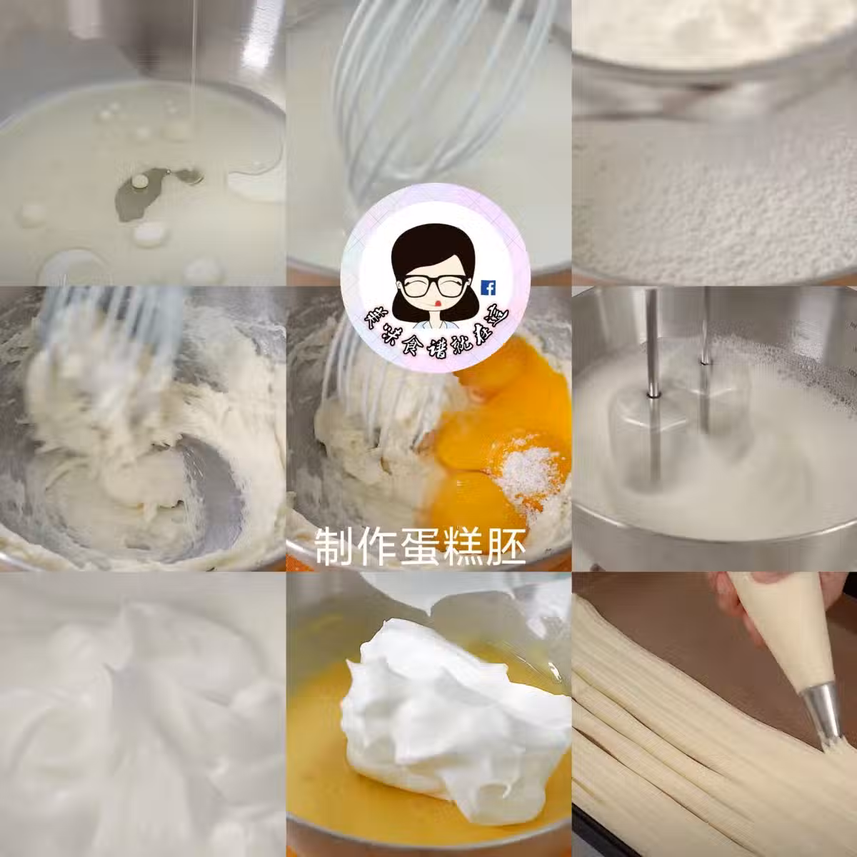3. 將1/3蛋白霜加入蛋黃糊中,拌勻。再倒回到剩餘蛋白霜中,翻拌均勻。
