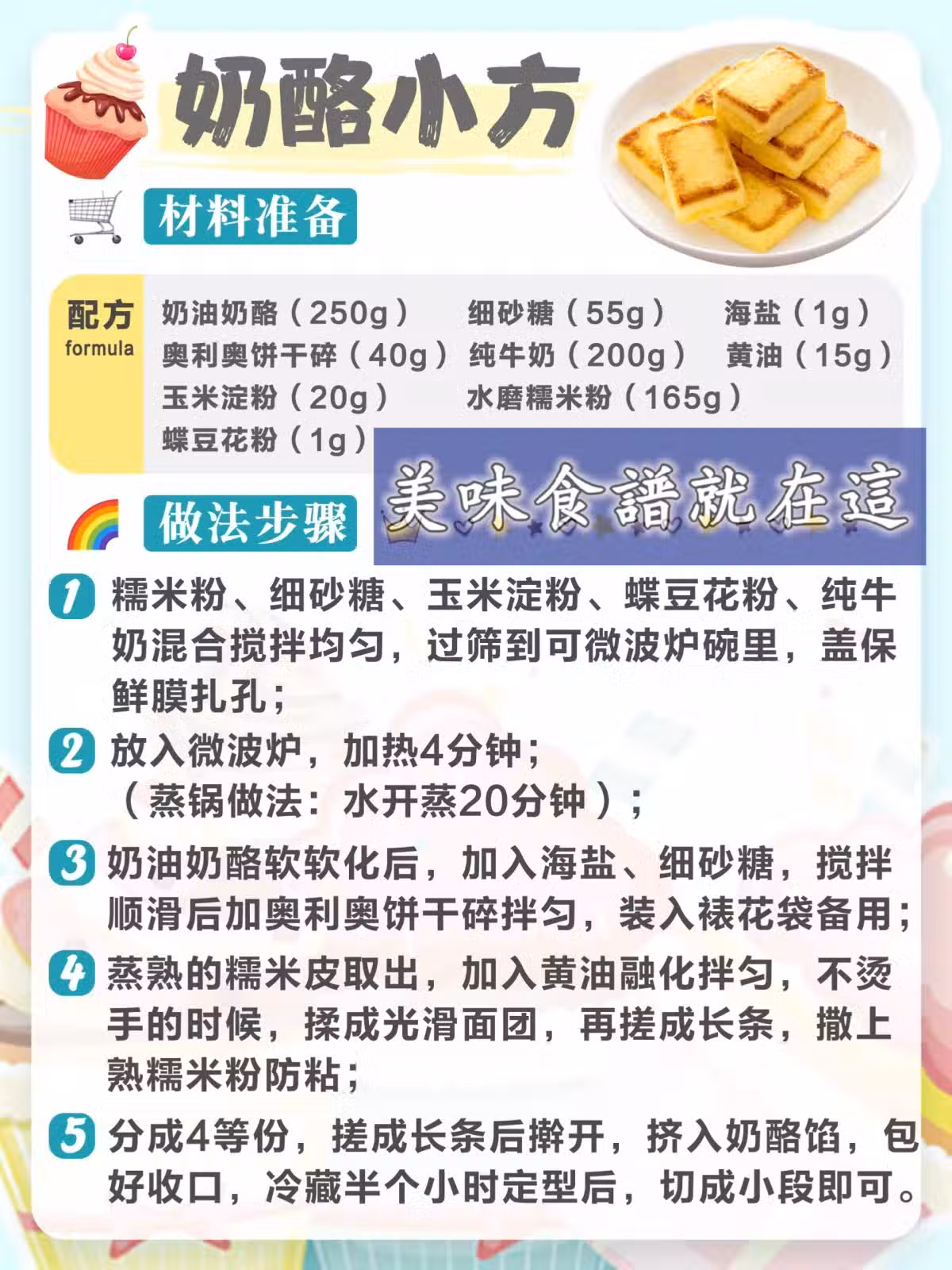 配方:奶油奶酪250g、細砂糖55g、海鹽1g