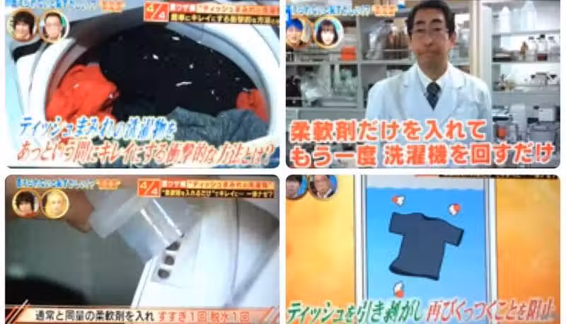 ▼柔軟精:日本電視節目《ありえへん∞世界》分享過一個簡單的方法。衣服上全都是紙屑的話,就只用柔軟精重洗一次衣服。只加入柔軟精不加洗衣精,衣服會暫時變滑溜,衛生紙屑就不容易附著在上面。這種方法能夠輕鬆去除大部分紙屑,剩下的一點點只要曬乾後拍掉就好了。