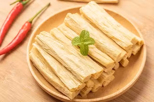 不知道吧,很多腐竹竟然是熏過硫磺的,還有些是陳年腐竹,品質不佳。要想吃到好吃的、新鮮的、乾淨衛生的腐竹,不妨試著自己做,1斤黃豆6斤水,做出來味道香又筋道,純天然無添加,更放心。