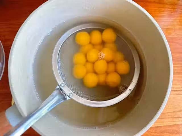 5、先把奶凍放在碗中,丸子瀝干水分加進去,還可以搭配一點西米。