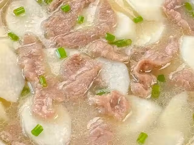 3、接著放入腌制好的牛肉片,再煮2分鐘煮熟即可,然後加入食鹽調味,撒上蔥花即可出鍋開吃。