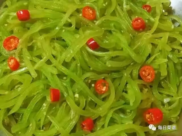 1、萵苣用刮皮刀削掉外皮,清洗乾淨後切成絲,刀工不好的可以用擦絲器擦成絲,加入食鹽抓勻腌制十分鐘。