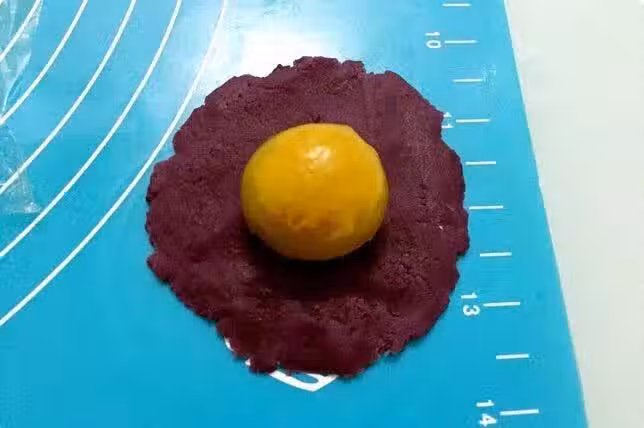 8、將紫薯皮內放入蛋黃,揉成小糰子即可。