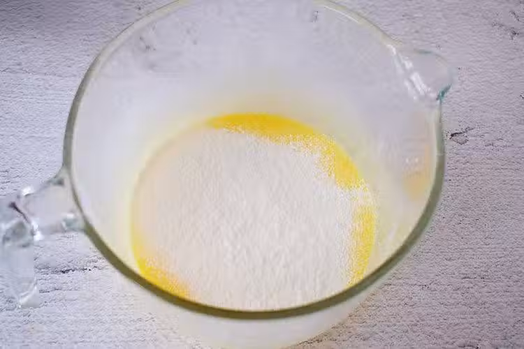 5、將準備好的低筋麵粉過篩一下,將低筋麵粉過篩之後攪拌均勻。