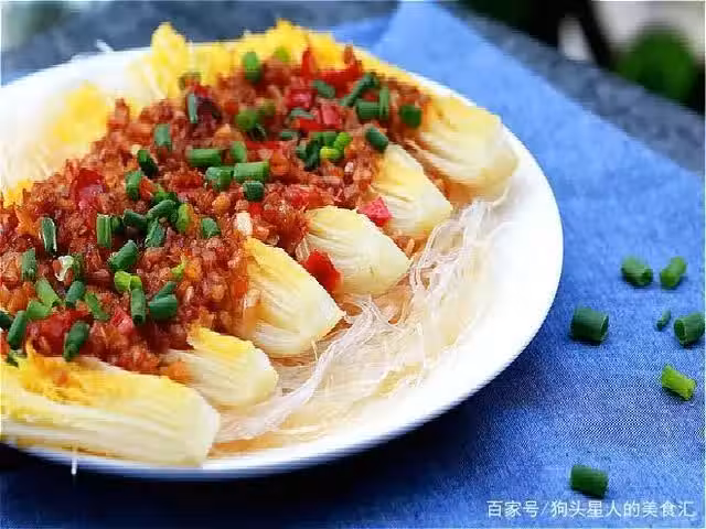 所需材料:娃娃菜2顆,粉絲40克,魚露5克,醬油5克,鹽1克,食用油25克,大蒜10瓣,蔥花適量,剁椒醬適量。