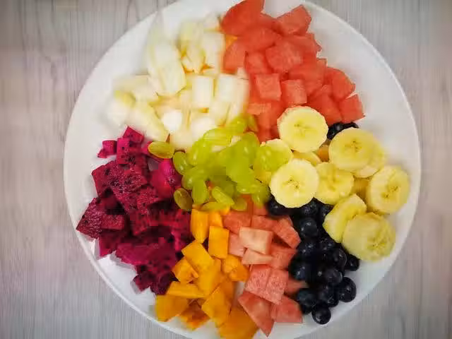 我用的是家裡冰箱剩的水果,香瓜,西瓜,火龍果,香蕉,水蜜桃,芒果,藍莓,每樣水果切小塊備用。