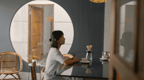 牆面我做出大片的落地窗,在側面也開出一個圓形的玻璃,視線可以看出去。我跟太太很常一起煮咖啡,廚房是我們最喜歡的空間。