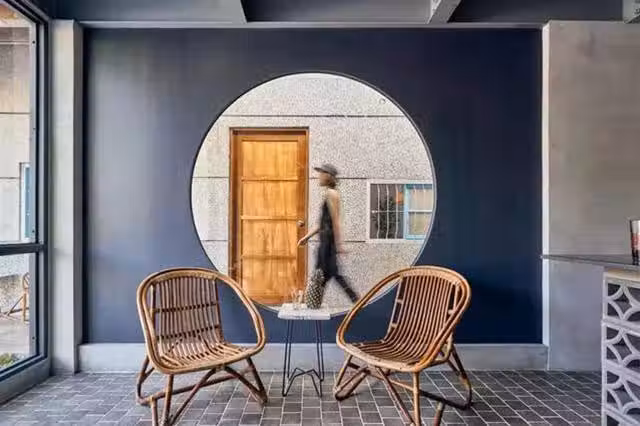 右邊的房舍規劃出廚房、餐廳、書房。