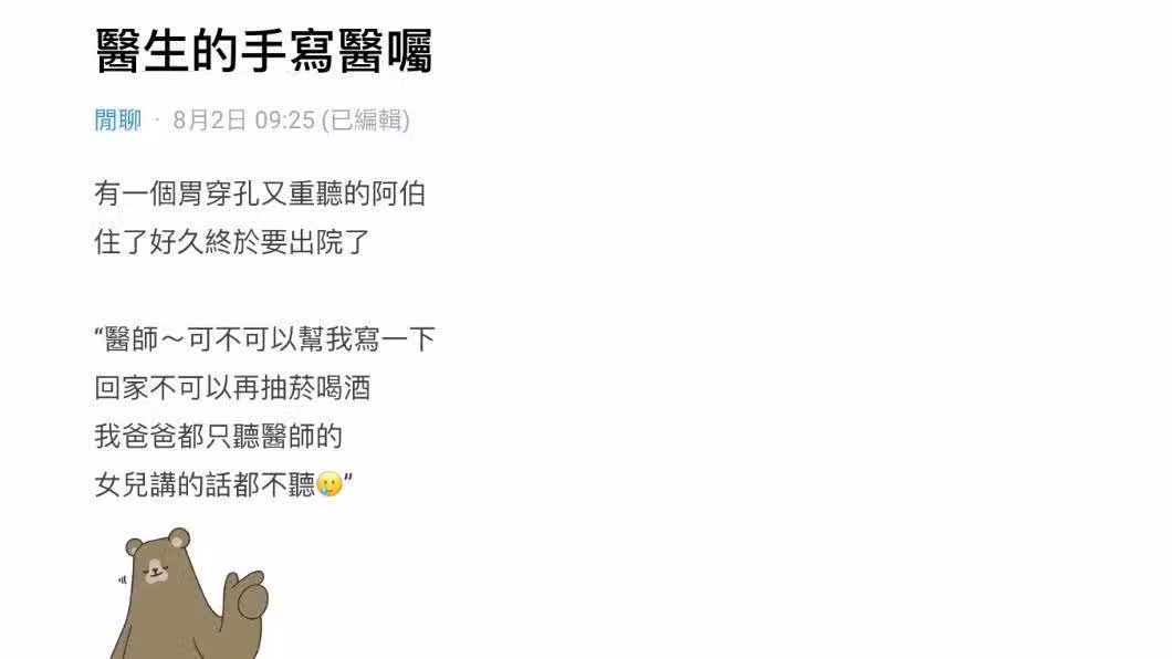胃穿孔父出院!孝女「求醫生做一事」他手寫15字 網全喊太暖「歪樓讚字超美」