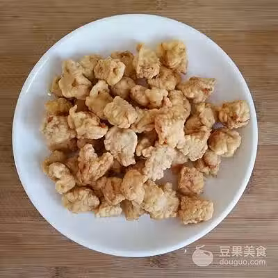 7、全部炸好的裡脊肉控油撈出。