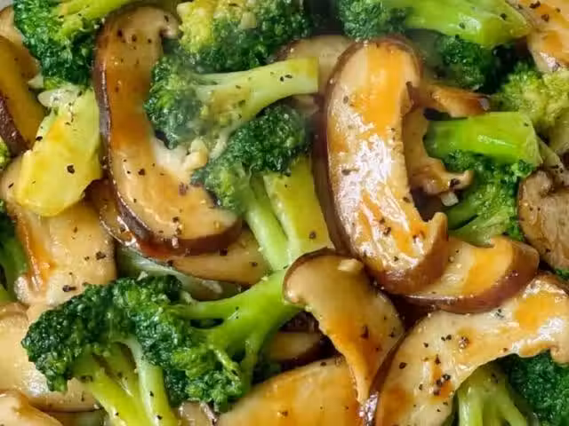 準備食材:香菇,西藍花,蒜末,黑胡椒粉。