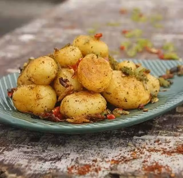 1.鍋下水將洗凈表皮的小土豆入煮熟。