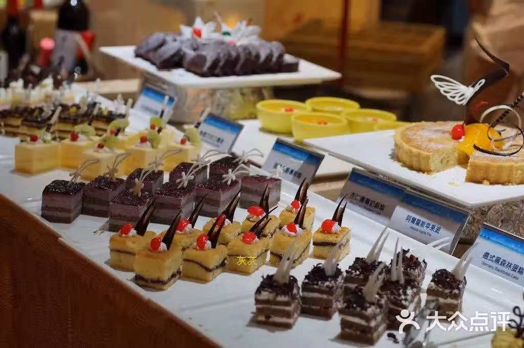 自助餐廳少不了蛋糕一類的食物,有奶油蛋糕、水果蛋糕等等,各種蛋糕五顏六色的看起來非常好看,正好它在最明顯的位置擺著,一下就將一些食客吸引住了,本想先去拿點別的食物嘗嘗,看到蛋糕後就忘記了,竟然挑花了眼,很想每種都拿一塊品嘗。