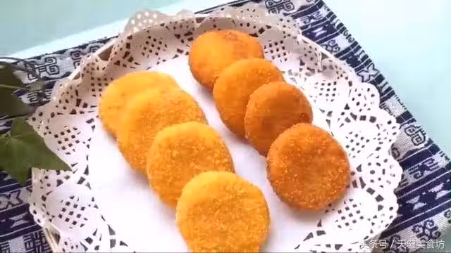 南瓜餅炸至表面金黃浮起油麵即可用漏勺撈起,撈起後再次把油溫燒至8成熱,然後把南瓜餅倒入鍋中復炸一次,復炸的速度一定要快,不然很容易炸過了,炸過頭了就不好吃了。炸15秒撈起時間剛剛好,復炸可以使炸好的南瓜餅變得更加的外酥里嫩,更加的好吃!南瓜餅炸好後撈起瀝干油分,然後擺放在有吸油紙的盤子裡!這樣一份外蘇里嫩,軟糯香甜,好吃不膩口的南瓜餅就做好了!喜歡的小夥伴,如果你學會了就做來試試看吧!