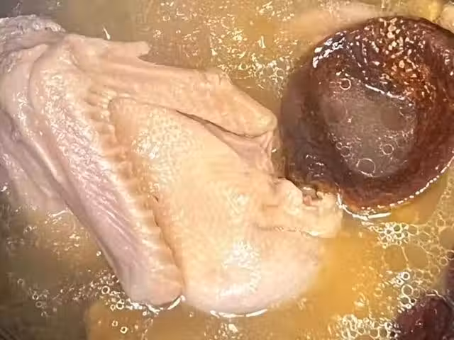 食材準備:陳皮、蓮子、紅棗、老鴨、薑片、蔥段。