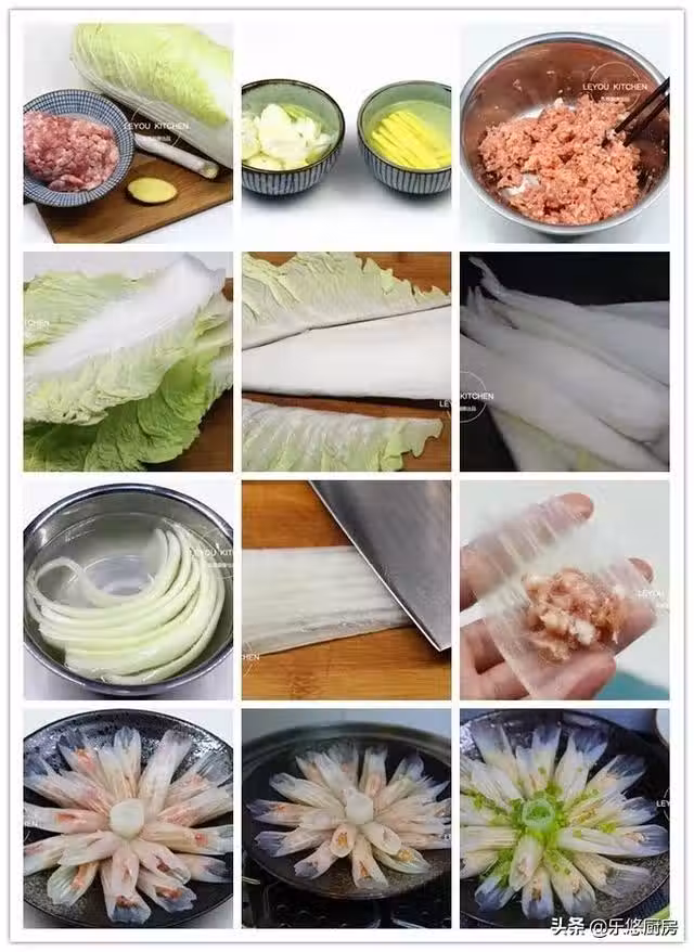 第十步:把白菜左右兩個邊捲起來就可以了。都卷好後放到盤子中,擺成花的形狀,如圖。
