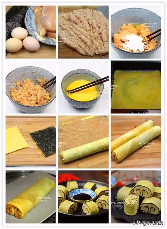 第七步:雞蛋煎好後晾涼,然後將紫菜鋪在上面,如圖。