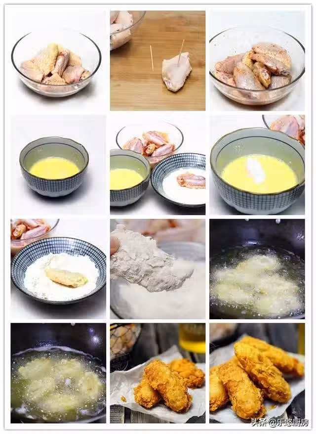 第九步:待全部雞翅都裹好後,開始炸制。往鍋中倒入適量的油,油熱後,將雞翅放入鍋中,炸至成熟、表面微黃時撈出。