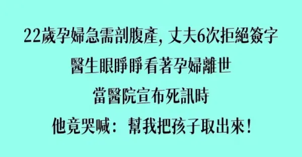 22歲孕婦急需剖腹產,丈夫6次拒絕簽字 醫生眼睜睜看著孕婦離世,當醫院宣布死訊時,他竟哭喊:幫我把孩子取出來