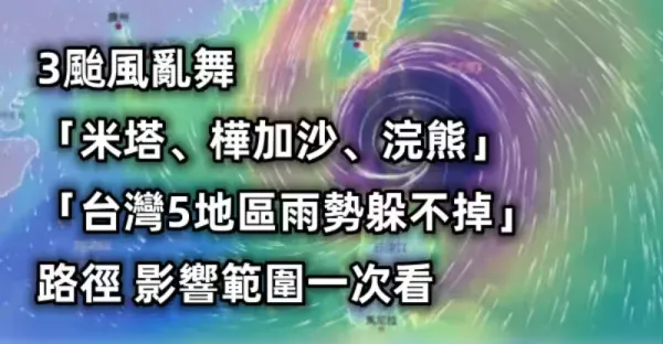 快訊/3颱風亂舞「米塔、樺加沙、浣熊」生成!「台灣5地區雨勢躲不掉」路徑、影響範圍一次看