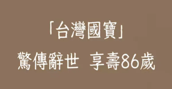 「台灣國寶」驚傳辭世 享壽86歲