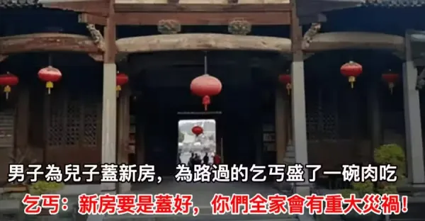 男子為兒子蓋新房,為路過的乞丐盛了一碗肉吃,乞丐:新房要是蓋好,你們全家會有重大災禍!