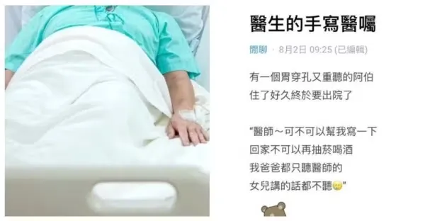胃穿孔父出院!孝女「求醫生做一事」他手寫15字 網全喊太暖「歪樓讚字超美」