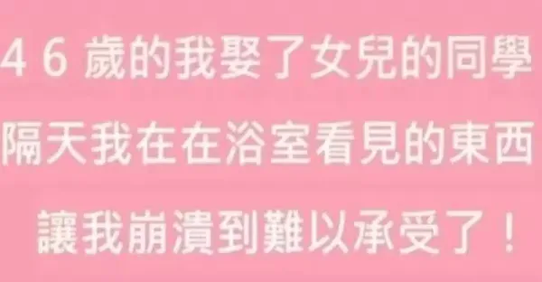 46歲的我娶了女兒的同學, 新婚的第1天,在浴室看見的東西讓我後悔了