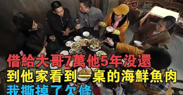 借給大哥7萬他5年沒還,到他家看到一桌的海鮮魚肉,我立即撕掉了欠條❗️