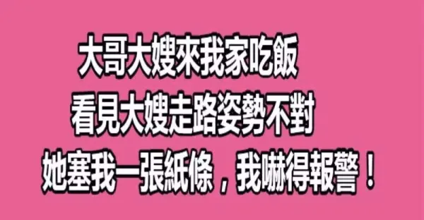 大哥大嫂來我家吃飯,看見大嫂走路姿勢不對,她塞我一張紙條,我嚇得報警❗️