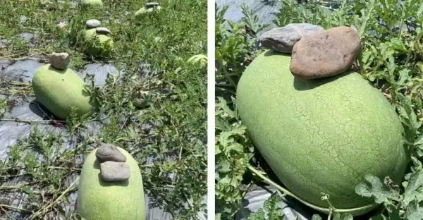 西瓜上壓石頭!網友不解問「是怕它跑掉嗎」被笑翻 果農揭「放的位置也有差」影響超大