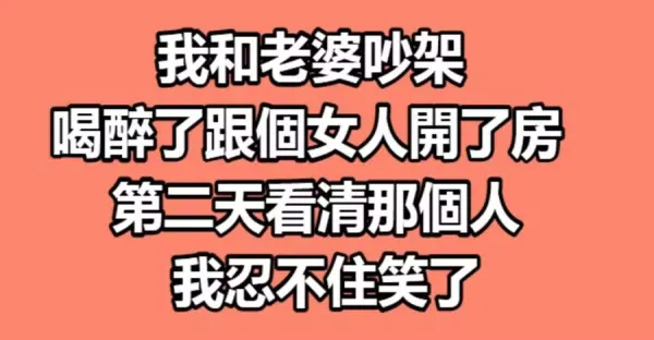 我和老婆吵架,喝醉了跟個女人開了房,第二天看清那個人,我忍不住笑了