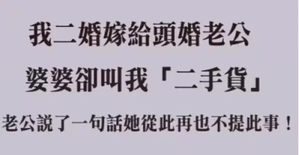我再婚過嫁給第一次結婚的老公,婆婆竟嗆我是「二手貨」,老公說了一句話,她從此再也不提這件事